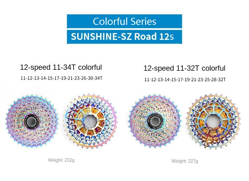 12-speed 11-34T Colorful 【11-12-13-14-15-17-19-21-23-26-30-34T】 243g 139mm
