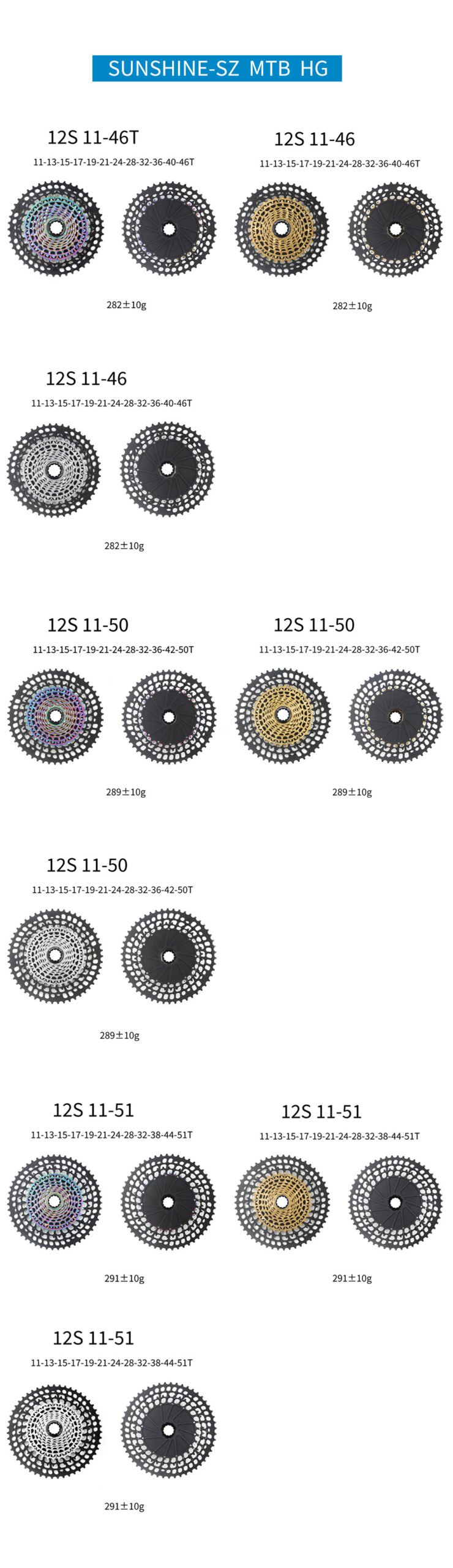 12S 11-50T, [11-13-15-17-19-21-24-28-32-36-42-50], 289±10g