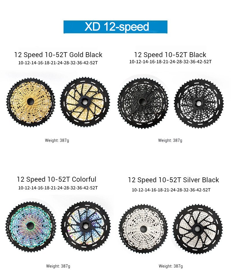 12-speed 10-52T Colorful 【10-12-14-16-18-21-24-28-32-36-42-52T】 387g 210mm