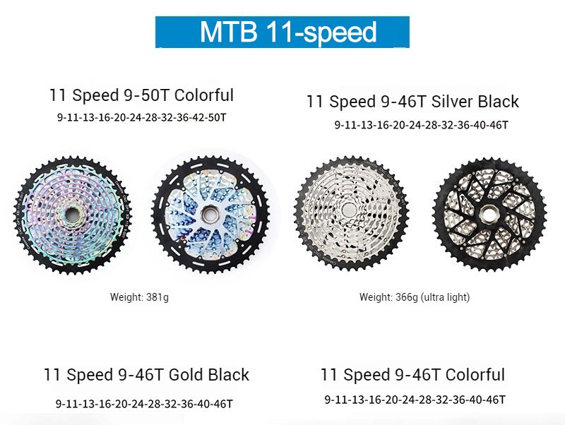 11-speed 9-50T Colorful 【9-11-13-16-20-24-28-32-36-42-50T】 381g 203mm