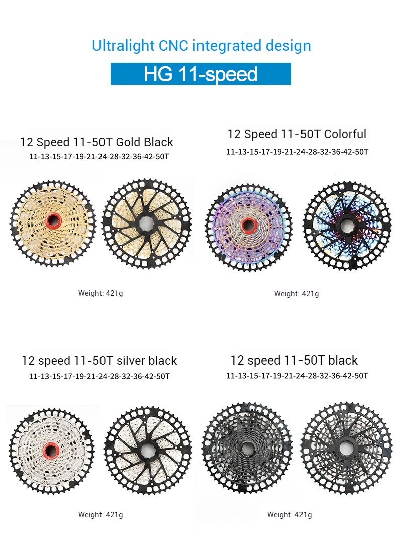 12-speed 11-50T Colorful-Black [11-13-15-17-19-21-24-28-32-36-42-50T] 421g 203mm